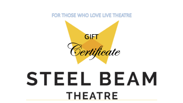 Steel Beam Theatre Gift Certificate For those who love live theatre Select another design $25 $50 $100 $200 $500 Please provide a valid value. Quantity Recipient First Name Recipient Last Name Do not email the gift certificate to the recipient. Recipient Phone Number Recipient email address Confirm Email Address Add another recipient Deliver this Gift Select another design Enter a Message for the Recipient After clicking continue, you have 10 minutes to complete your order. If your order requires payment, please have your credit card available before continuing. Gift Card Pictures Selected design